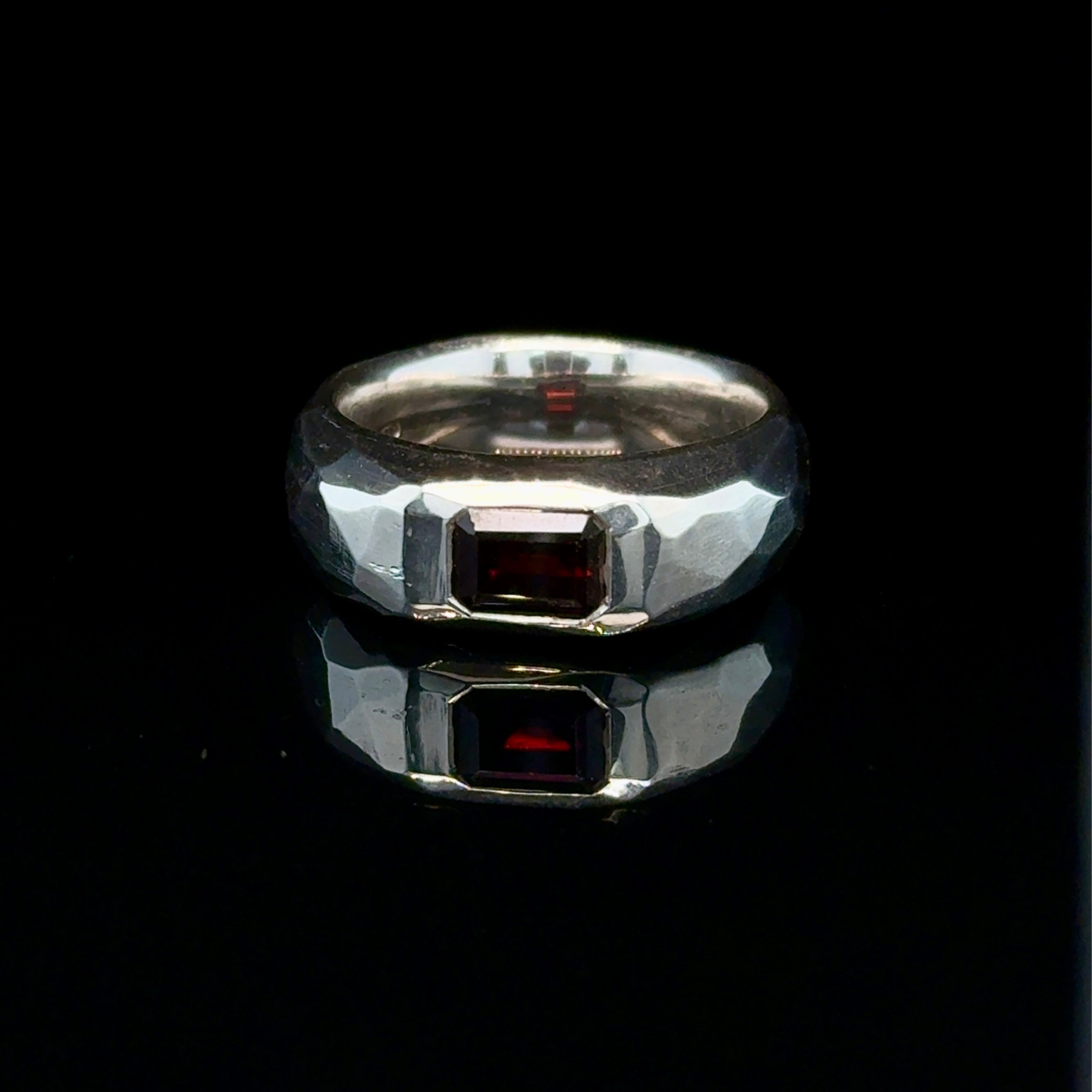 Sterling silver and garnet faceted ring. Size 'R 1/2'
